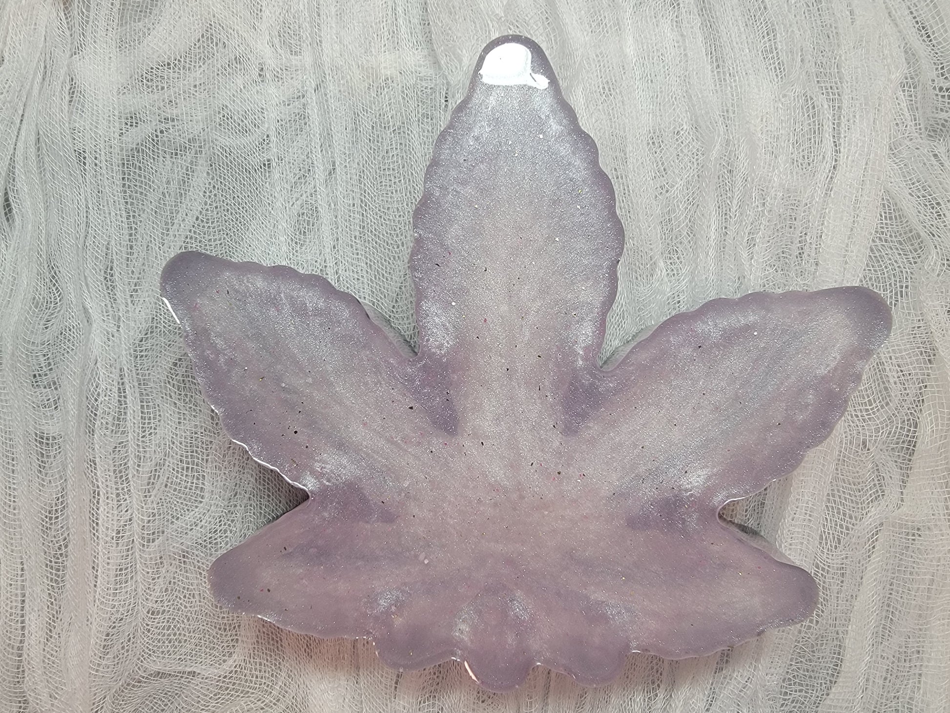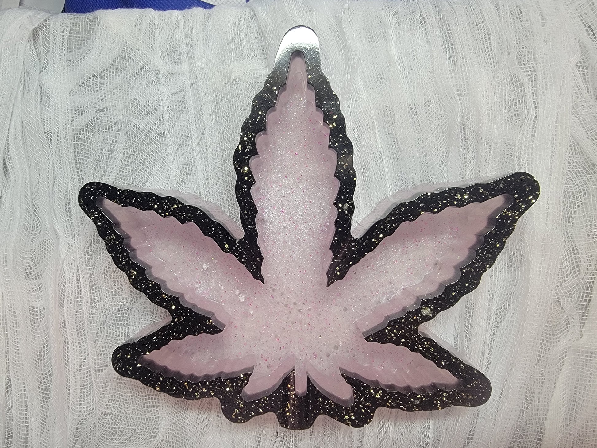 This is a black and pink glitter-sparkle resin, leaf ash tray.